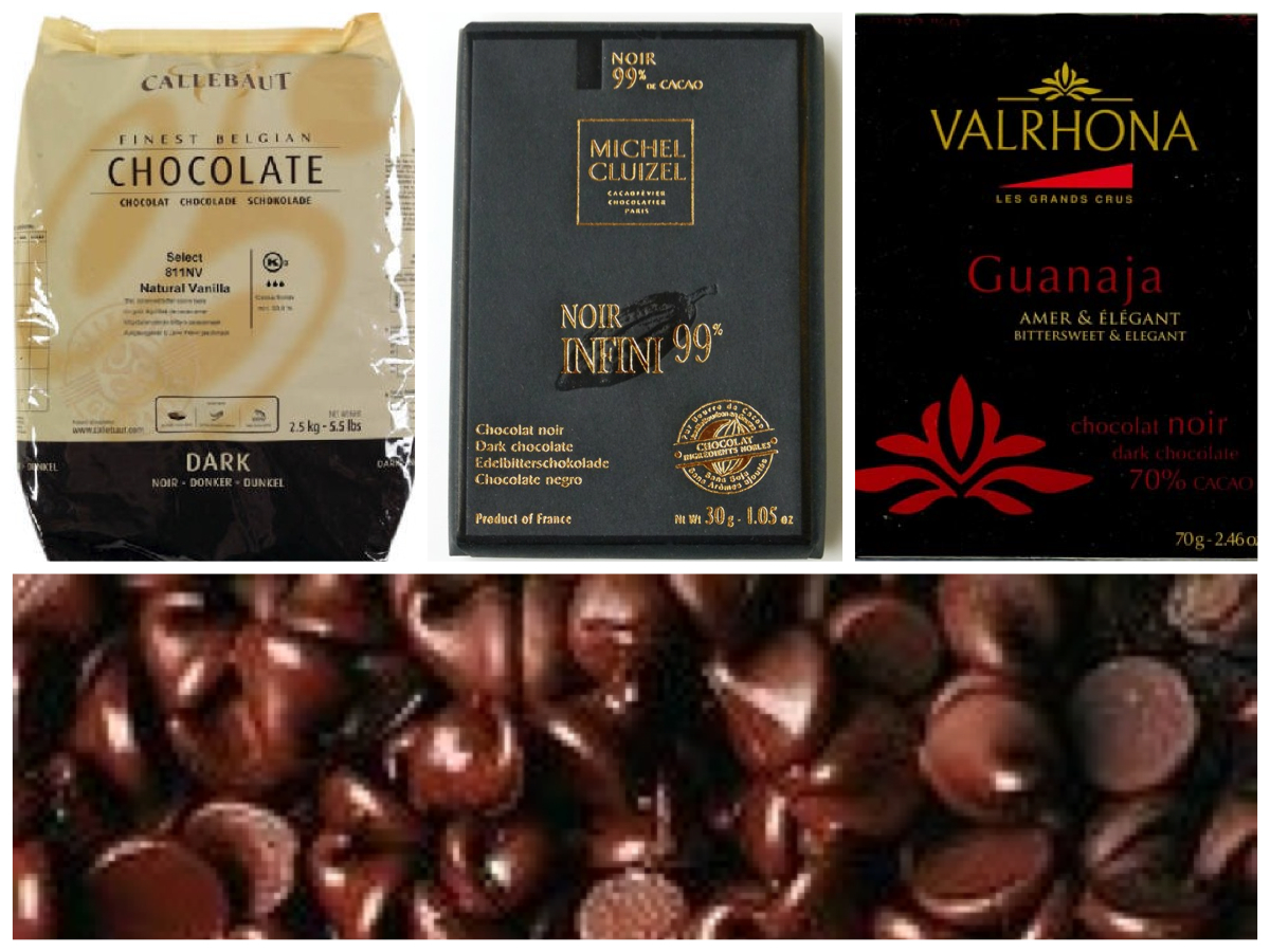Photo credits: http://www.callebaut.com for Callebaut products and http://www.valrhona.com for Valrhona products.